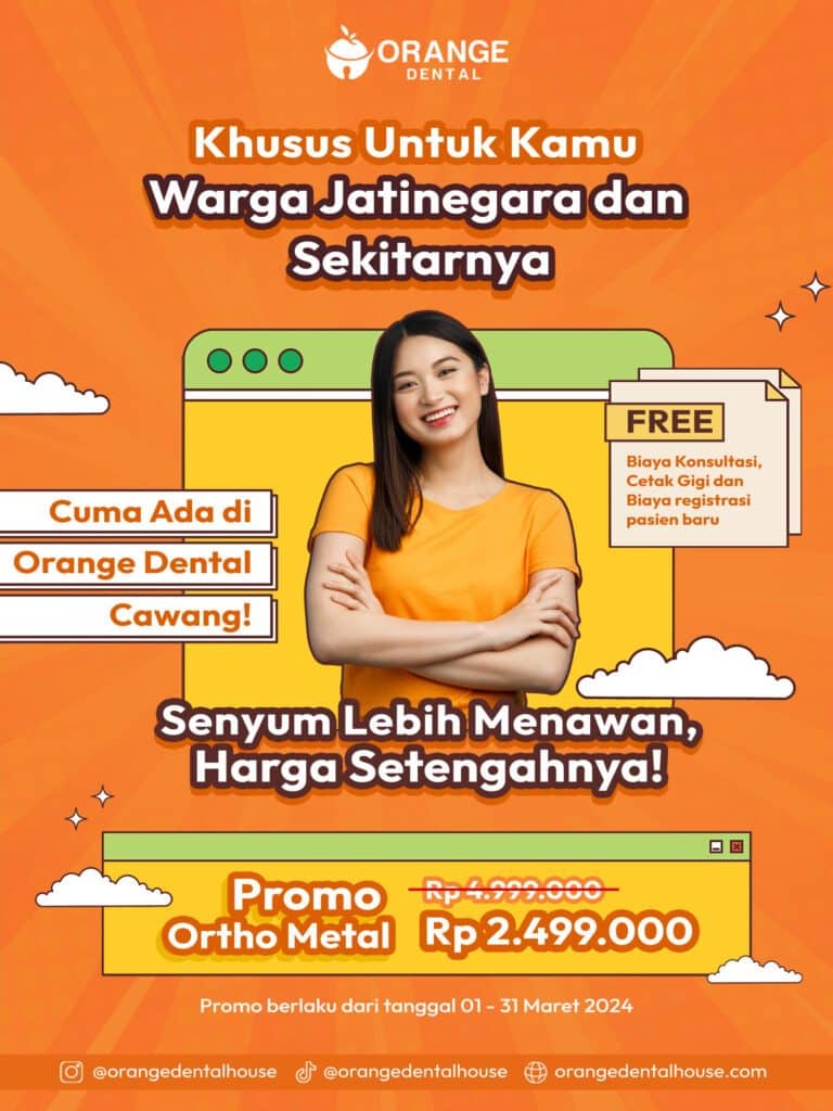 Khusus untuk kamu warga Jatinegara dan sekitarnya. Sekarang nggak perlu takut mahal lagi kalau mau pasang behel, karena ada Promo Ortho Metal di Orange Dental Cawang yang bisa jadi pilihan tepat buat kamu! Pasang behel metal di Orange Dental Cawang hanya Rp 2.499.000 aja dari harga normal Rp 4.999.000. Super hemat banget kan